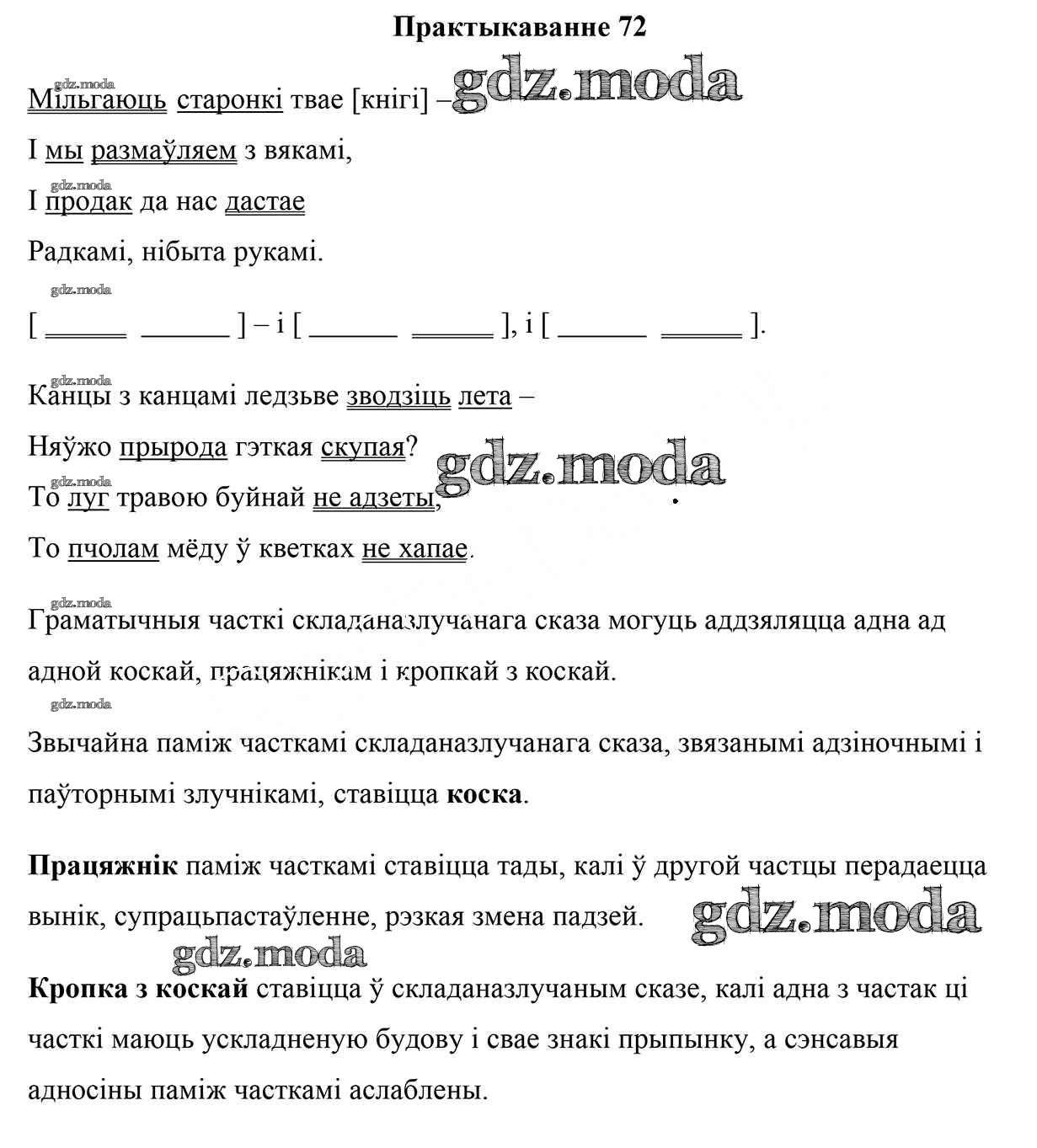 ГДЗ решение к заданию № 72 Белоруская мова 9 класс Валочка Г. М. Национальный институт образования 2019 ФГОС бесплатно на гдз.мода!
