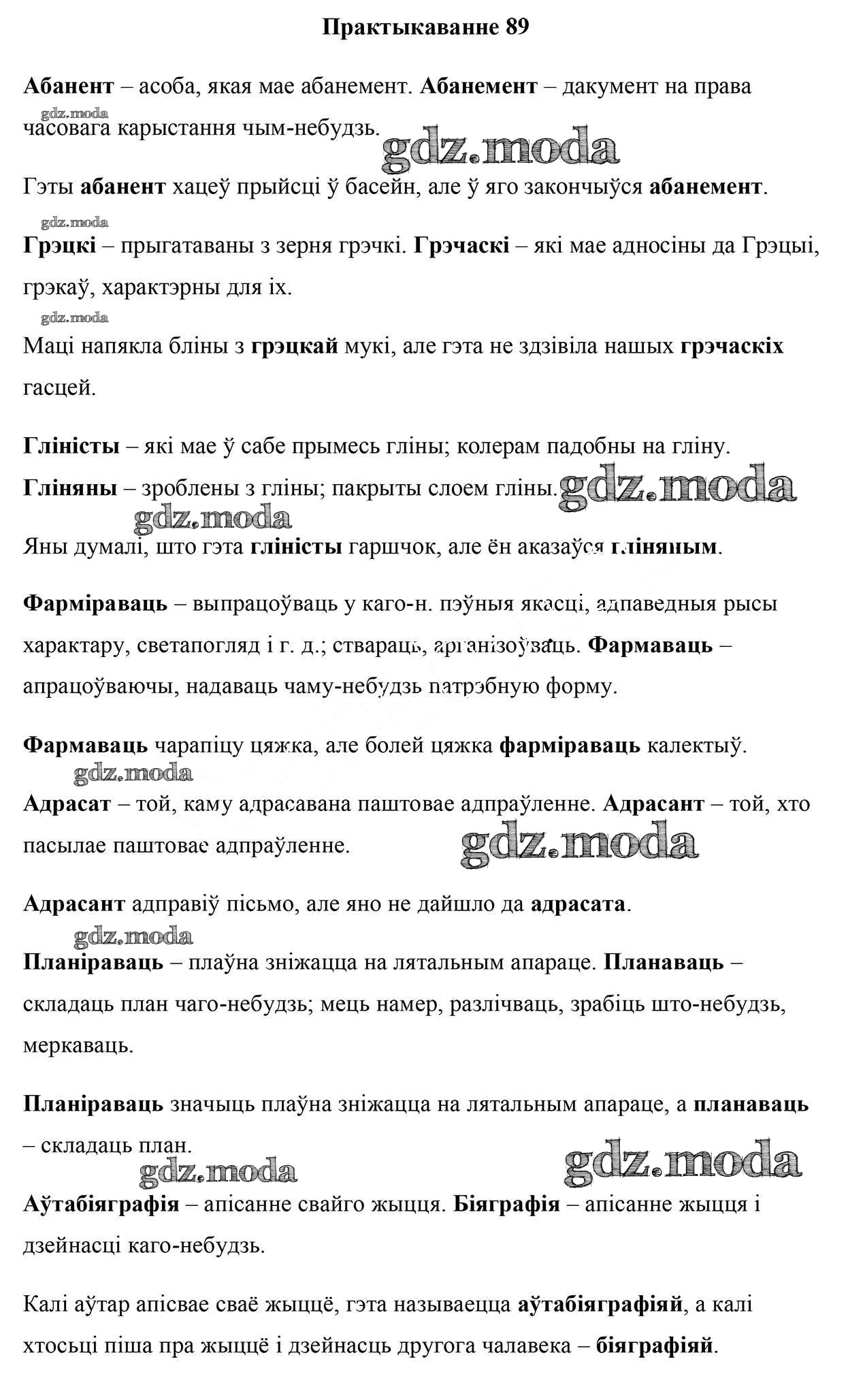 ГДЗ решение к заданию № 89 Белоруская мова 9 класс Валочка Г. М. Национальный институт образования 2019 ФГОС бесплатно на гдз.мода!