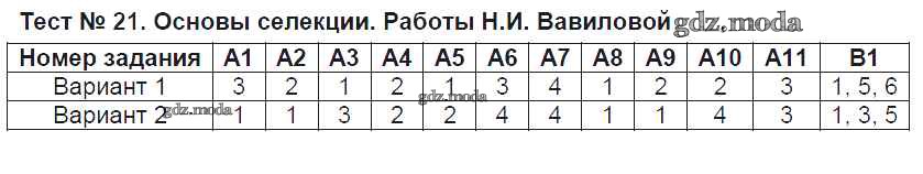 ГДЗ решение к заданию № Тест №21. Основы селекции. Работы Н.И. Вавиловой Биология 9 класс контрольно-измерительные материалы Богданов Н.А. ВАКО 2017 ФГОС бесплатно на гдз.мода!