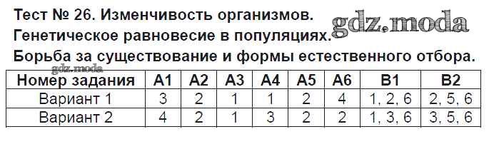 ГДЗ решение к заданию № Тест №26. Изменчивость организмов. Генетическое равновесие в популяциях Биология 9 класс контрольно-измерительные материалы Богданов Н.А. ВАКО 2017 ФГОС бесплатно на гдз.мода!