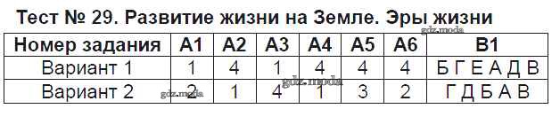 ОТВЕТ на задание № Тест №29. Развитие жизни на Земле. Эры жизни Контрольно-измерительные материалы (КИМ) по Биологии 9 класс Богданов