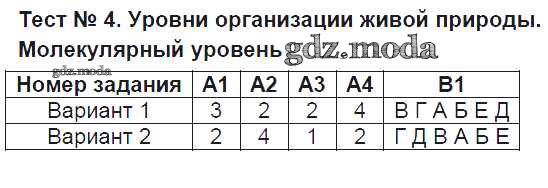 ГДЗ решение к заданию № Тест №4. Уровни организации живой природы Биология 9 класс контрольно-измерительные материалы Богданов Н.А. ВАКО 2017 ФГОС бесплатно на гдз.мода!