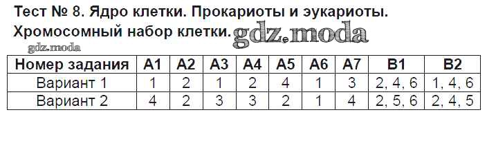 ГДЗ решение к заданию № Тест №8. Ядро клетки. Прокариоты и эукариоты Биология 9 класс контрольно-измерительные материалы Богданов Н.А. ВАКО 2017 ФГОС бесплатно на гдз.мода!