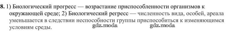 ГДЗ решение к заданию № 8 Биология 9 класс Пономарева И.Н. Вентана-граф 2019 ФГОС бесплатно на гдз.мода!