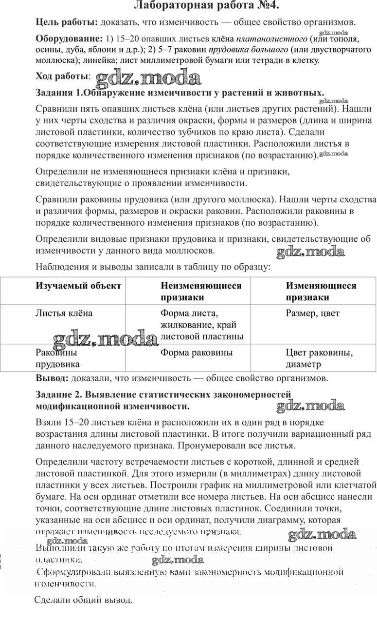 ГДЗ решение к заданию № 4 Биология 9 класс Пономарева И.Н. Вентана-граф 2019 ФГОС бесплатно на гдз.мода!