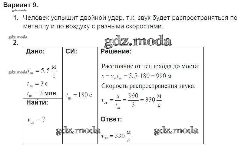 ГДЗ решение к заданию № 9 Физика 9 класс дидактические материалы Марон А.Е. (к уч. Перышкина А.В.) Дрофа 2019 ФГОС бесплатно на гдз.мода!