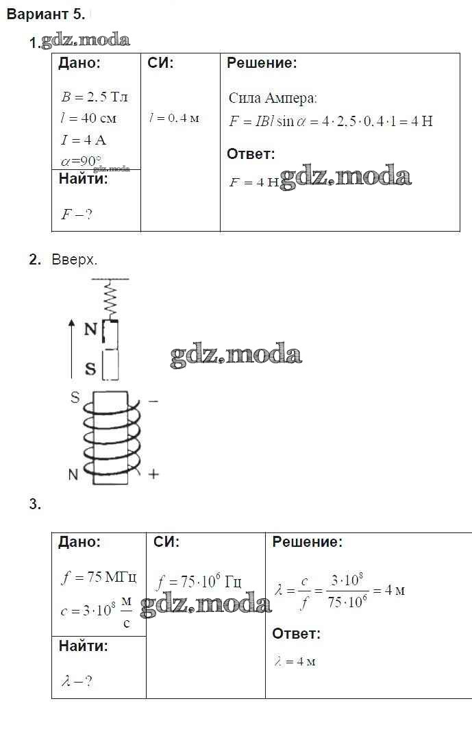 ОТВЕТ на задание № 5 Дидактические материалы по Физике 9 класс Марон УМК