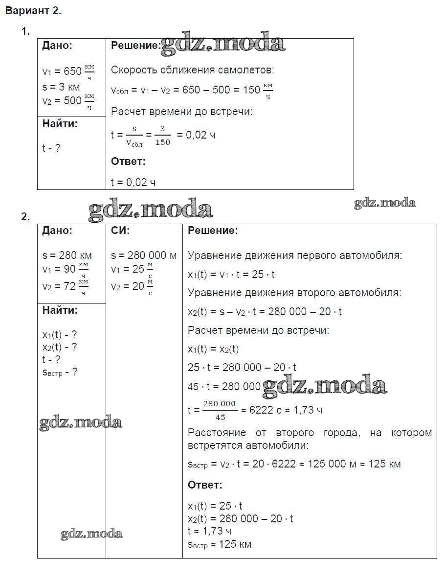 ГДЗ решение к заданию № 2 Физика 9 класс дидактические материалы Марон А.Е. (к уч. Перышкина А.В.) Дрофа 2019 ФГОС бесплатно на гдз.мода!