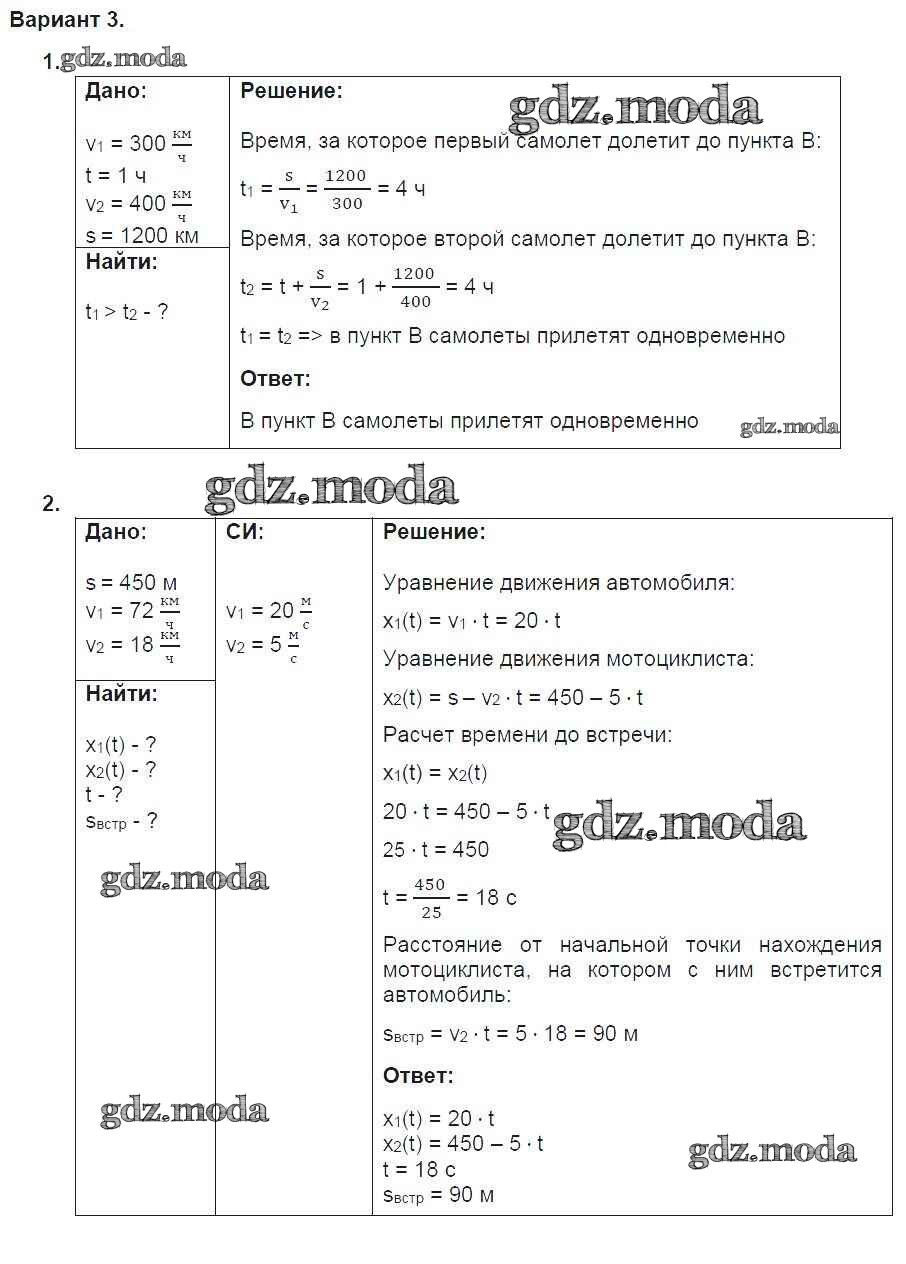 ГДЗ решение к заданию № 3 Физика 9 класс дидактические материалы Марон А.Е. (к уч. Перышкина А.В.) Дрофа 2019 ФГОС бесплатно на гдз.мода!