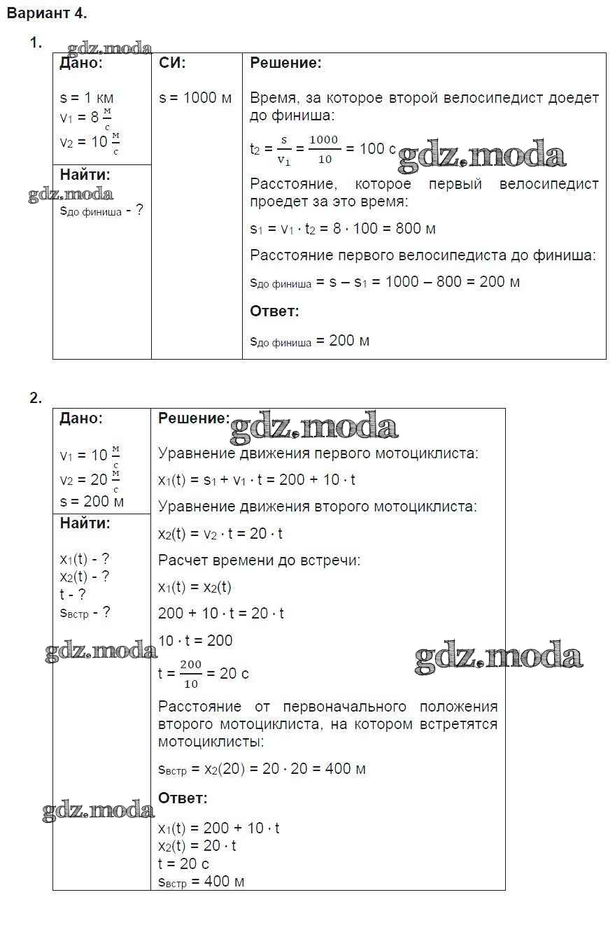 ГДЗ решение к заданию № 4 Физика 9 класс дидактические материалы Марон А.Е. (к уч. Перышкина А.В.) Дрофа 2019 ФГОС бесплатно на гдз.мода!