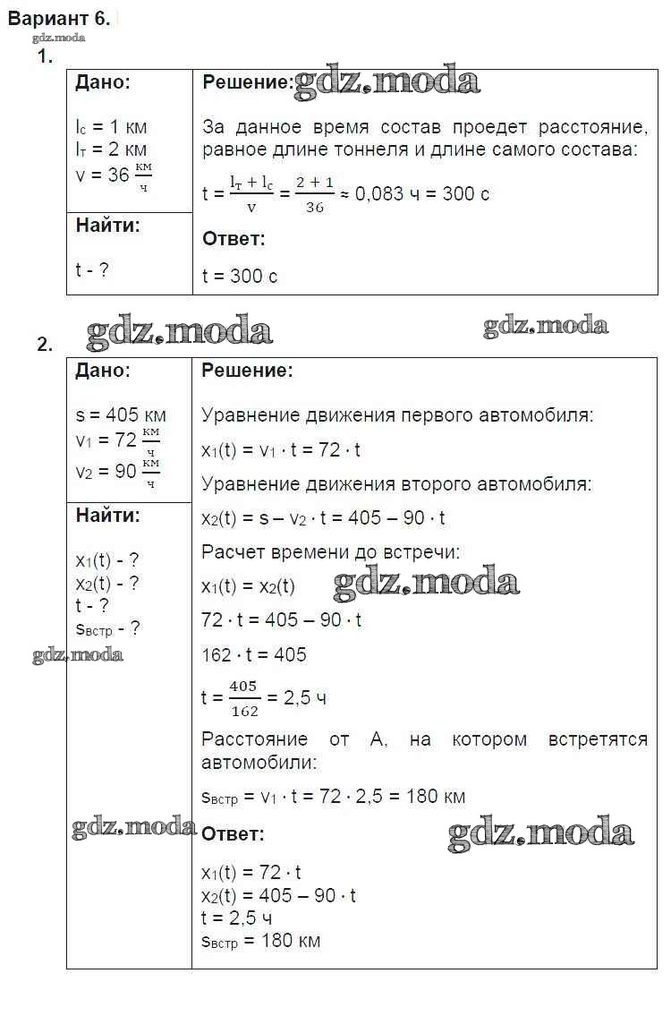 ГДЗ решение к заданию № 6 Физика 9 класс дидактические материалы Марон А.Е. (к уч. Перышкина А.В.) Дрофа 2019 ФГОС бесплатно на гдз.мода!
