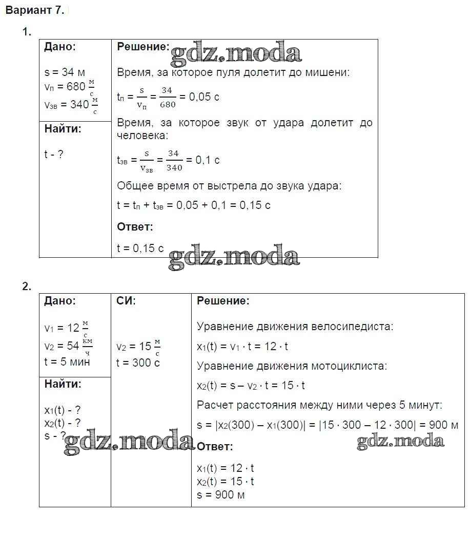 ГДЗ решение к заданию № 7 Физика 9 класс дидактические материалы Марон А.Е. (к уч. Перышкина А.В.) Дрофа 2019 ФГОС бесплатно на гдз.мода!