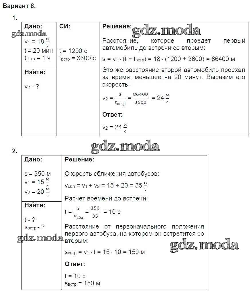 ГДЗ решение к заданию № 8 Физика 9 класс дидактические материалы Марон А.Е. (к уч. Перышкина А.В.) Дрофа 2019 ФГОС бесплатно на гдз.мода!