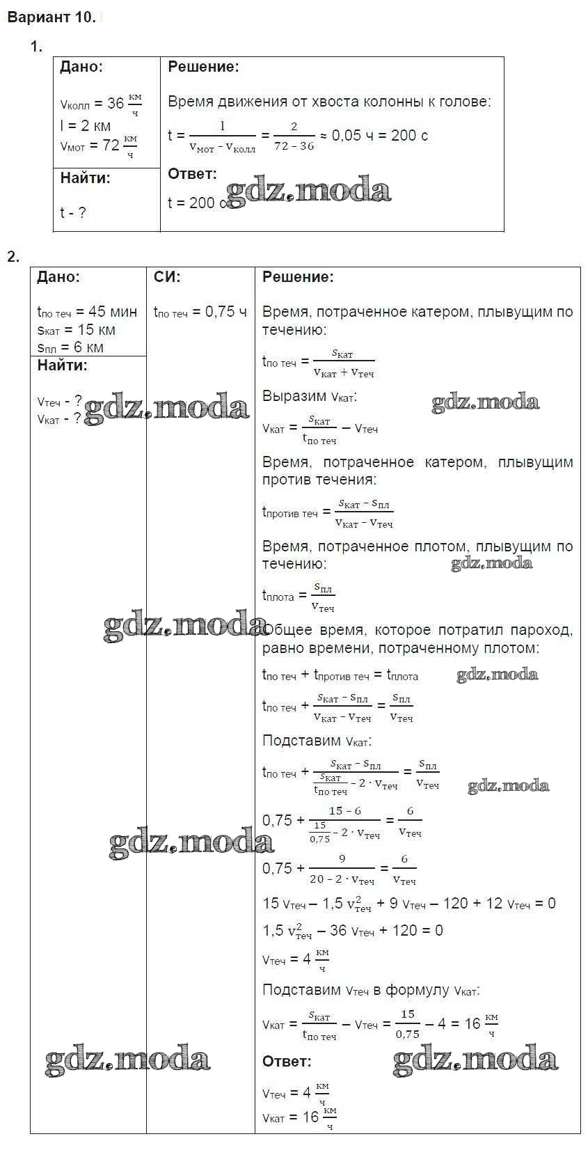 ГДЗ решение к заданию № 10 Физика 9 класс дидактические материалы Марон А.Е. (к уч. Перышкина А.В.) Дрофа 2019 ФГОС бесплатно на гдз.мода!