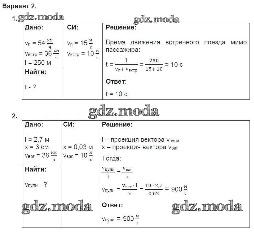 ГДЗ решение к заданию № 2 Физика 9 класс дидактические материалы Марон А.Е. (к уч. Перышкина А.В.) Дрофа 2019 ФГОС бесплатно на гдз.мода!