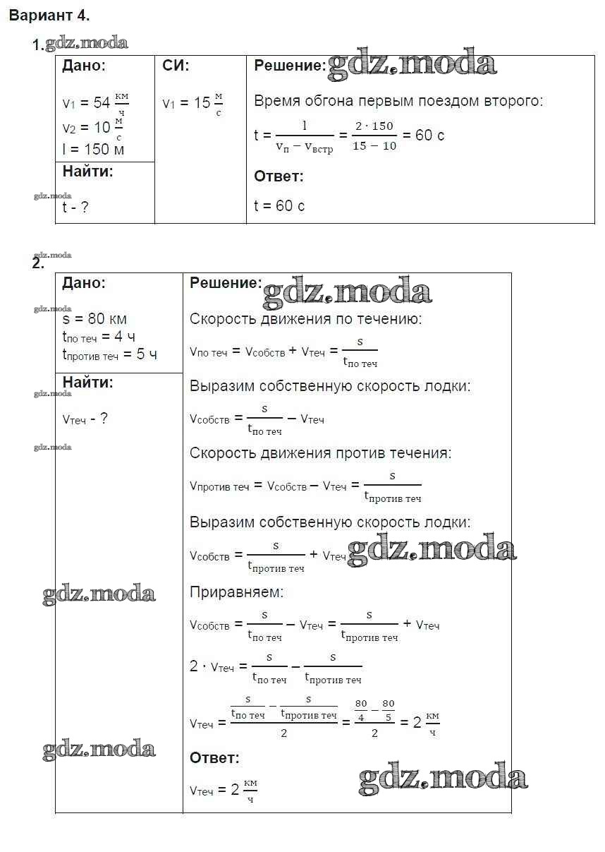 ГДЗ решение к заданию № 4 Физика 9 класс дидактические материалы Марон А.Е. (к уч. Перышкина А.В.) Дрофа 2019 ФГОС бесплатно на гдз.мода!