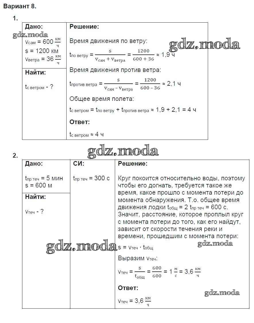 ГДЗ решение к заданию № 8 Физика 9 класс дидактические материалы Марон А.Е. (к уч. Перышкина А.В.) Дрофа 2019 ФГОС бесплатно на гдз.мода!