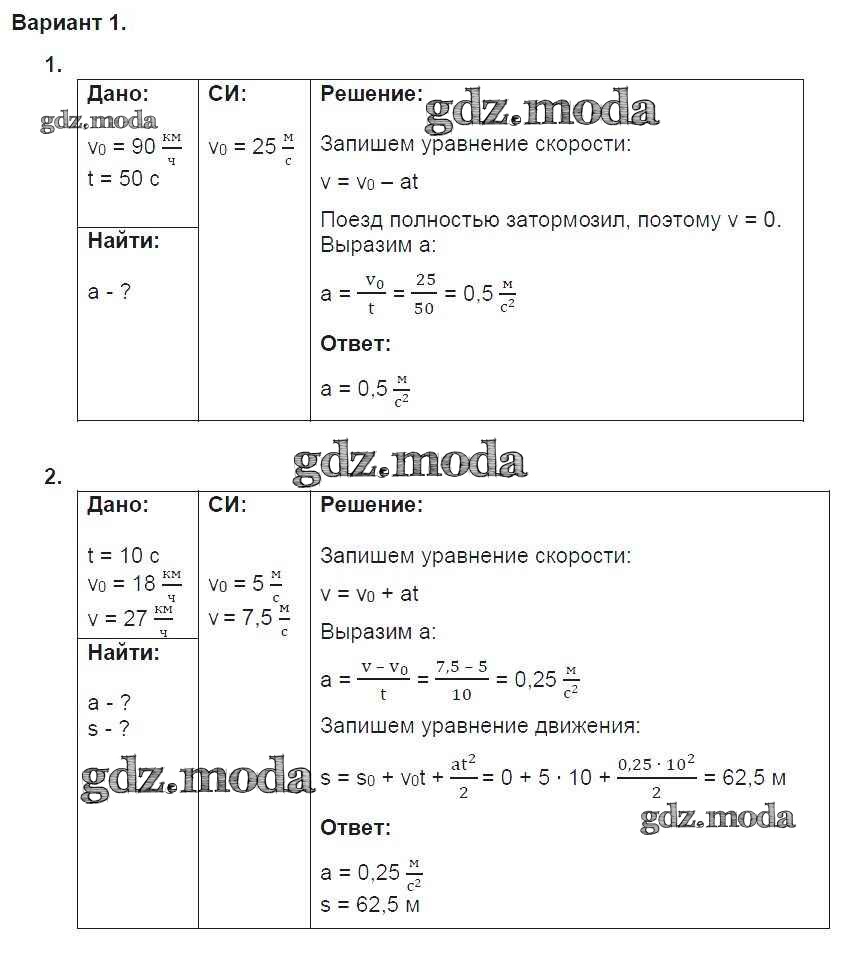 ГДЗ решение к заданию № 1 Физика 9 класс дидактические материалы Марон А.Е. (к уч. Перышкина А.В.) Дрофа 2019 ФГОС бесплатно на гдз.мода!
