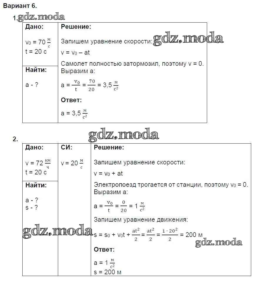 ГДЗ решение к заданию № 6 Физика 9 класс дидактические материалы Марон А.Е. (к уч. Перышкина А.В.) Дрофа 2019 ФГОС бесплатно на гдз.мода!