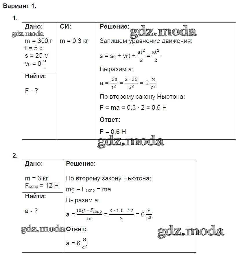 ГДЗ решение к заданию № 1 Физика 9 класс дидактические материалы Марон А.Е. (к уч. Перышкина А.В.) Дрофа 2019 ФГОС бесплатно на гдз.мода!