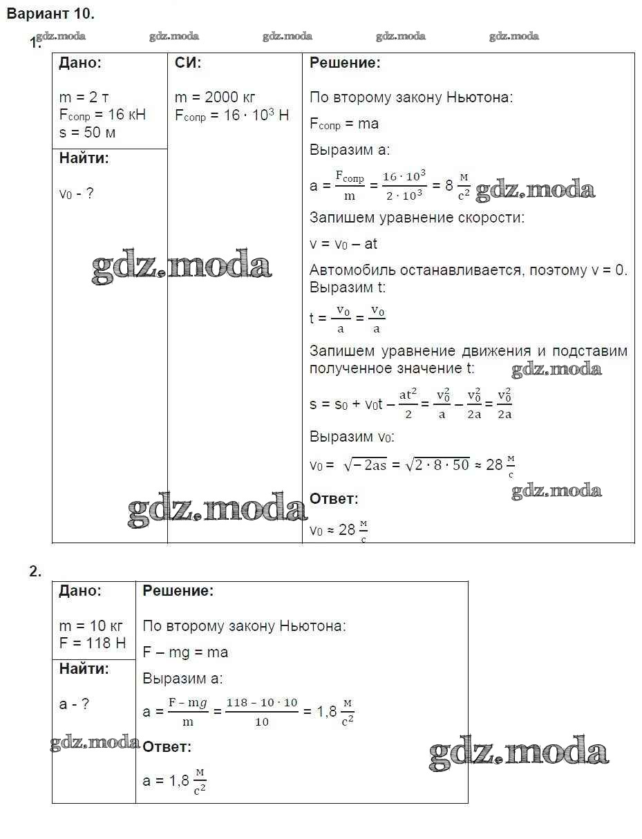 ГДЗ решение к заданию № 10 Физика 9 класс дидактические материалы Марон А.Е. (к уч. Перышкина А.В.) Дрофа 2019 ФГОС бесплатно на гдз.мода!