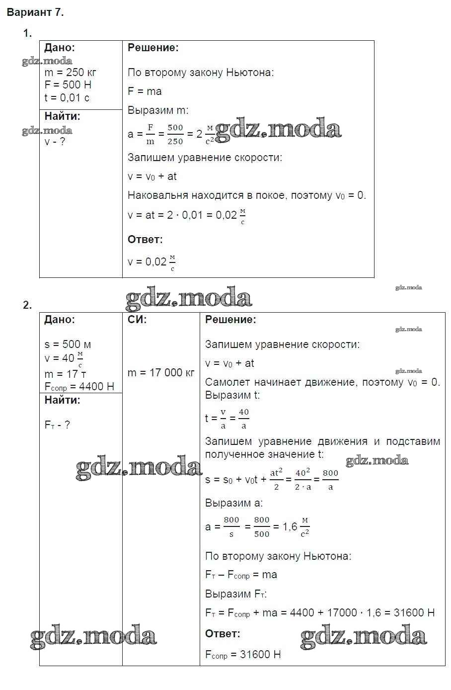 ГДЗ решение к заданию № 7 Физика 9 класс дидактические материалы Марон А.Е. (к уч. Перышкина А.В.) Дрофа 2019 ФГОС бесплатно на гдз.мода!