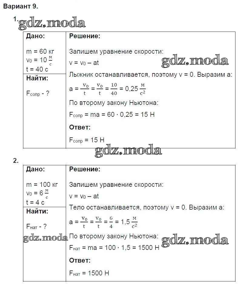 ГДЗ решение к заданию № 9 Физика 9 класс дидактические материалы Марон А.Е. (к уч. Перышкина А.В.) Дрофа 2019 ФГОС бесплатно на гдз.мода!