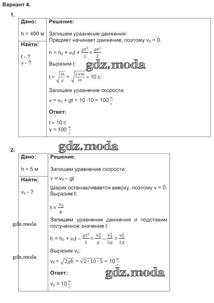 ГДЗ решение к заданию № 4 Физика 9 класс дидактические материалы Марон А.Е. (к уч. Перышкина А.В.) Дрофа 2019 ФГОС бесплатно на гдз.мода!