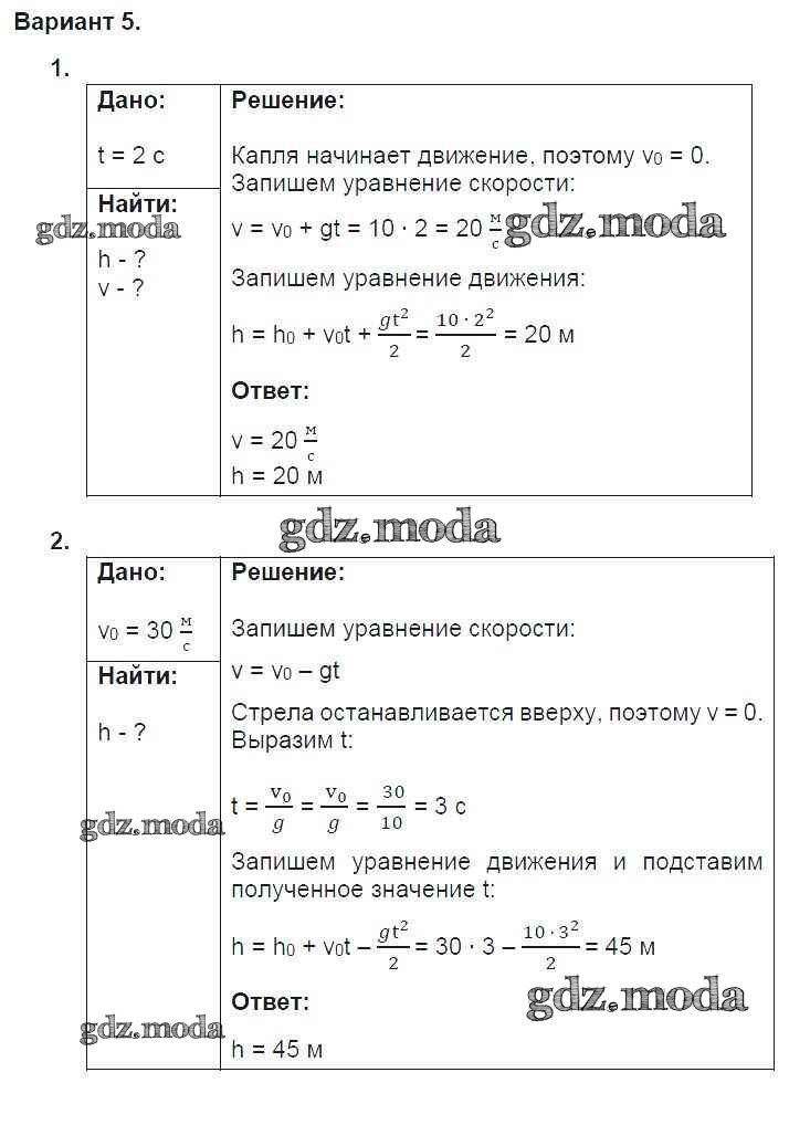 ГДЗ решение к заданию № 5 Физика 9 класс дидактические материалы Марон А.Е. (к уч. Перышкина А.В.) Дрофа 2019 ФГОС бесплатно на гдз.мода!