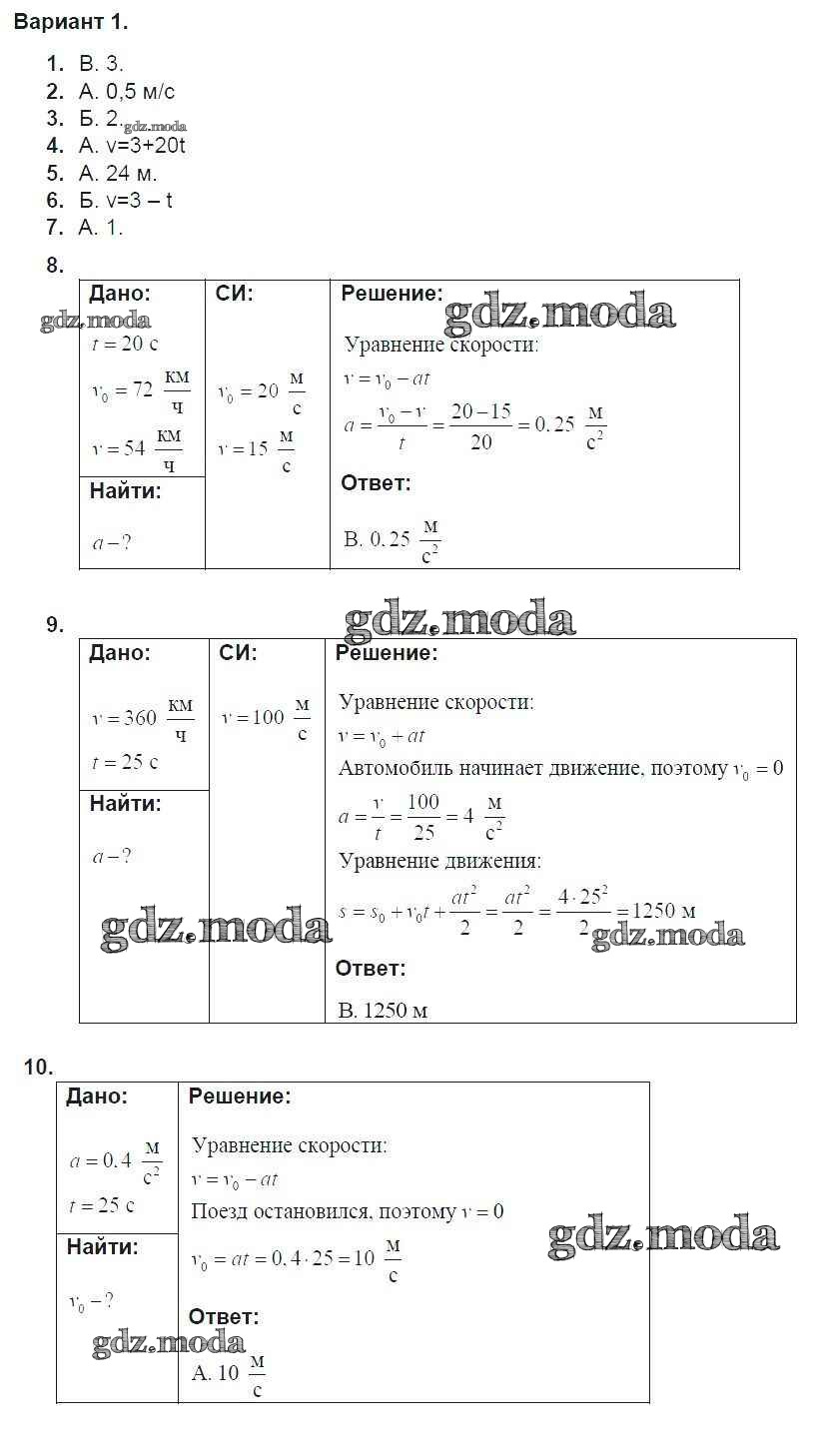 ГДЗ решение к заданию № 1 Физика 9 класс дидактические материалы Марон А.Е. (к уч. Перышкина А.В.) Дрофа 2019 ФГОС бесплатно на гдз.мода!
