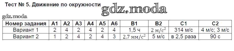 ОТВЕТ на задание № 5 Контрольно-измерительные материалы (КИМ) по Физике 9 класс Лозовенко