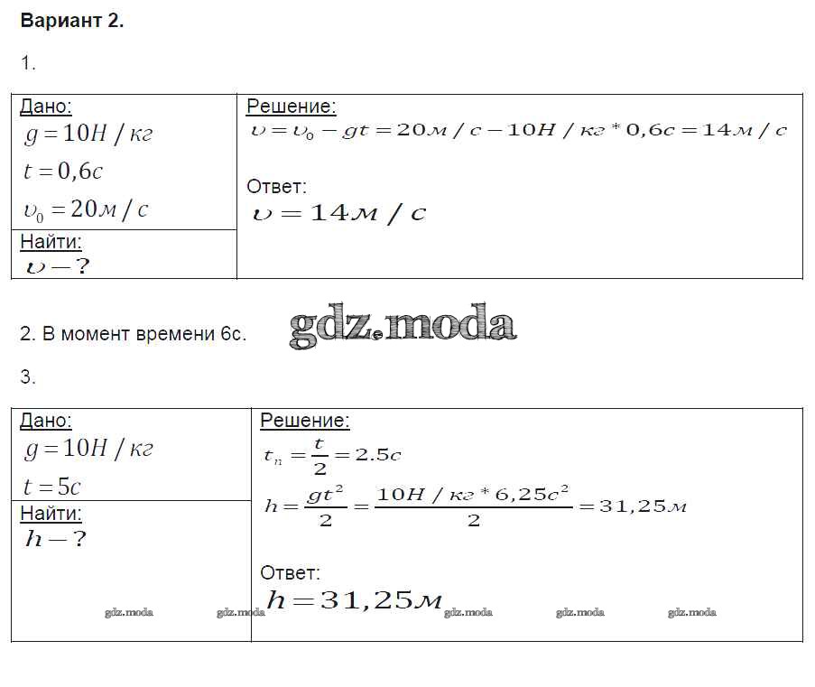 ГДЗ решение к заданию № 2 Физика 9 класс контрольные и самостоятельные работы Громцева О.И. ( к новому уч. Перышкина А.В.) Экзамен 2017 ФГОС бесплатно на гдз.мода!