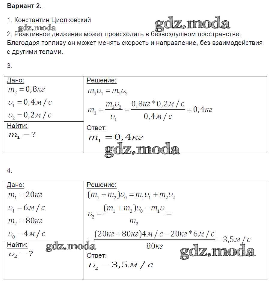 ГДЗ решение к заданию № 2 Физика 9 класс контрольные и самостоятельные работы Громцева О.И. ( к новому уч. Перышкина А.В.) Экзамен 2017 ФГОС бесплатно на гдз.мода!