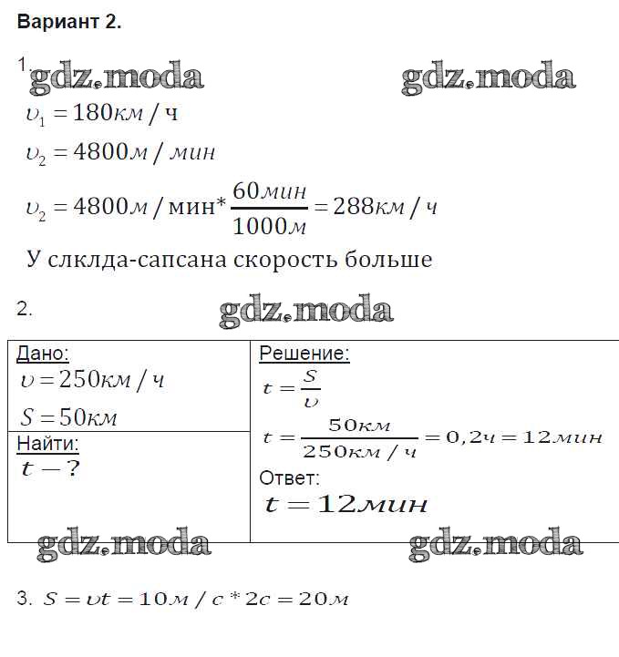 ГДЗ решение к заданию № 2 Физика 9 класс контрольные и самостоятельные работы Громцева О.И. ( к новому уч. Перышкина А.В.) Экзамен 2017 ФГОС бесплатно на гдз.мода!