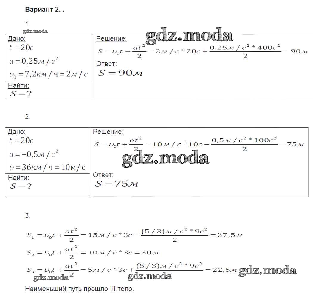 ГДЗ решение к заданию № 2 Физика 9 класс контрольные и самостоятельные работы Громцева О.И. ( к новому уч. Перышкина А.В.) Экзамен 2017 ФГОС бесплатно на гдз.мода!