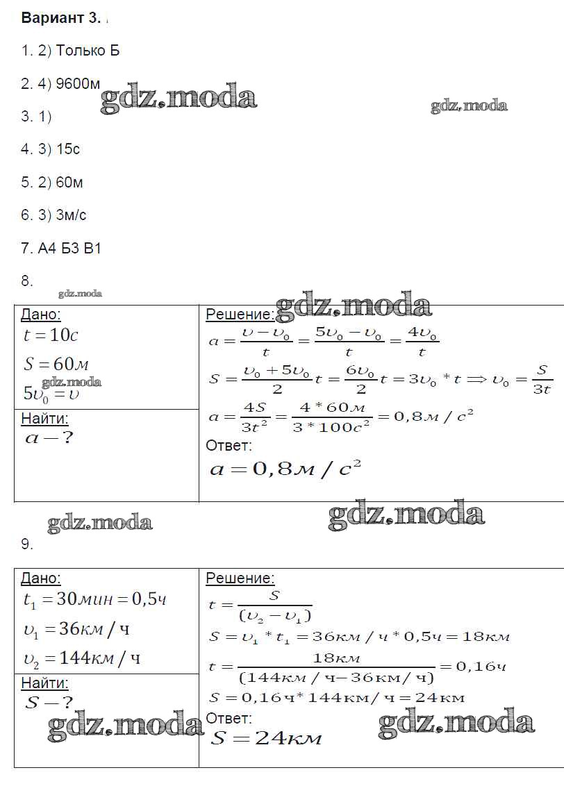 ГДЗ решение к заданию № 3 Физика 9 класс контрольные и самостоятельные работы Громцева О.И. ( к новому уч. Перышкина А.В.) Экзамен 2017 ФГОС бесплатно на гдз.мода!