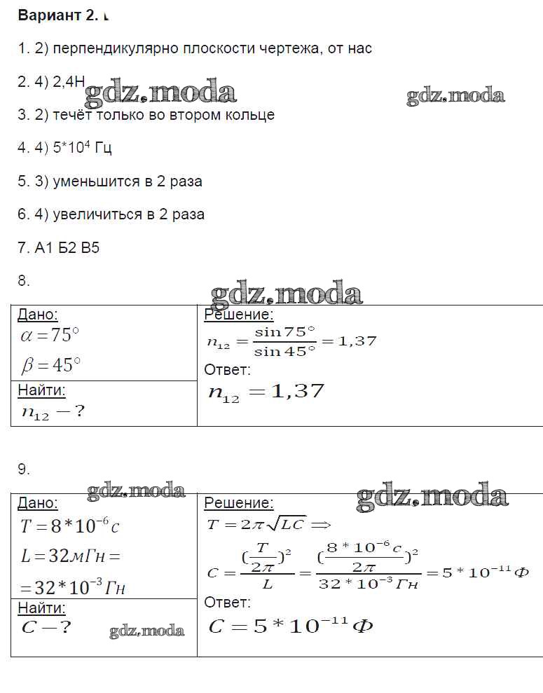 ГДЗ решение к заданию № 2 Физика 9 класс контрольные и самостоятельные работы Громцева О.И. ( к новому уч. Перышкина А.В.) Экзамен 2017 ФГОС бесплатно на гдз.мода!