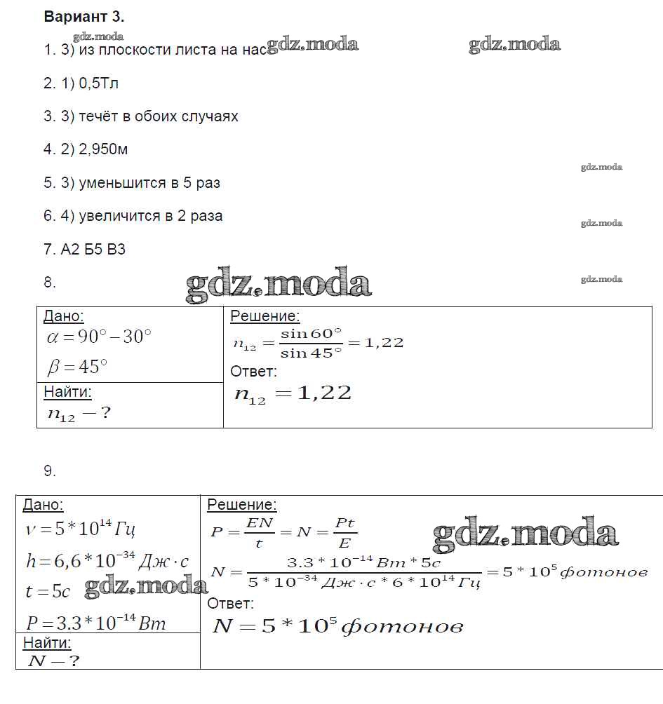 ГДЗ решение к заданию № 3 Физика 9 класс контрольные и самостоятельные работы Громцева О.И. ( к новому уч. Перышкина А.В.) Экзамен 2017 ФГОС бесплатно на гдз.мода!