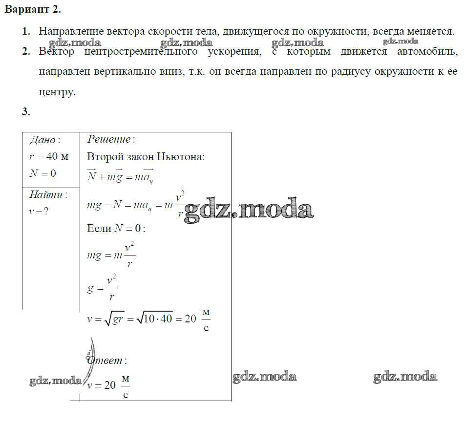 ГДЗ решение к заданию № 2 Физика 9 класс самостоятельные и контрольные работы Марон А.Е. ( к уч. Перышкина А.В.) Дрофа 2018 ФГОС бесплатно на гдз.мода!