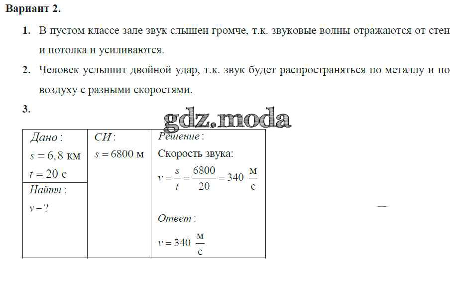 ГДЗ решение к заданию № 2 Физика 9 класс самостоятельные и контрольные работы Марон А.Е. ( к уч. Перышкина А.В.) Дрофа 2018 ФГОС бесплатно на гдз.мода!