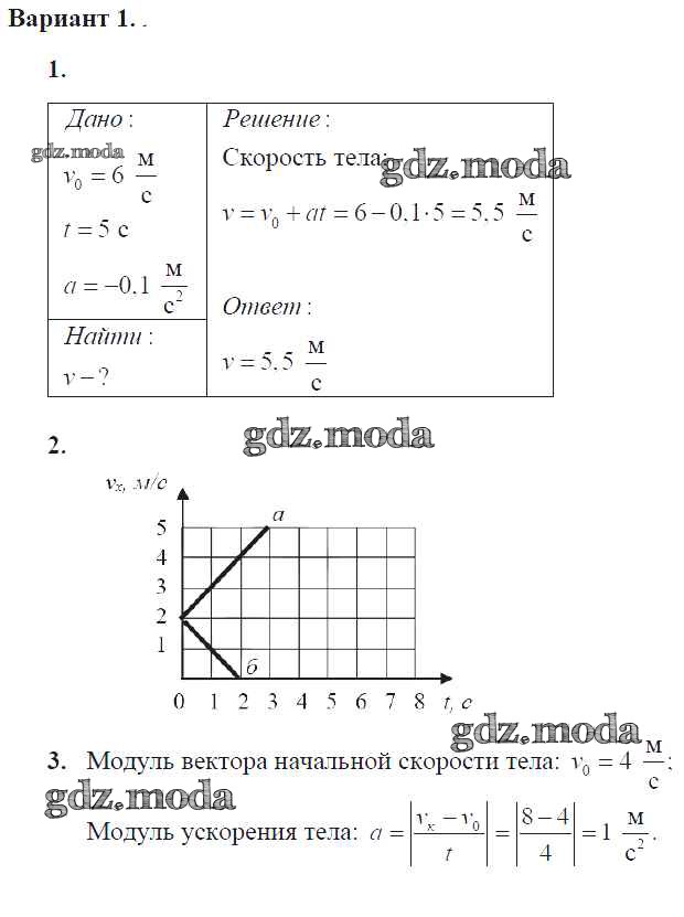 ГДЗ решение к заданию № 1 Физика 9 класс самостоятельные и контрольные работы Марон А.Е. ( к уч. Перышкина А.В.) Дрофа 2018 ФГОС бесплатно на гдз.мода!