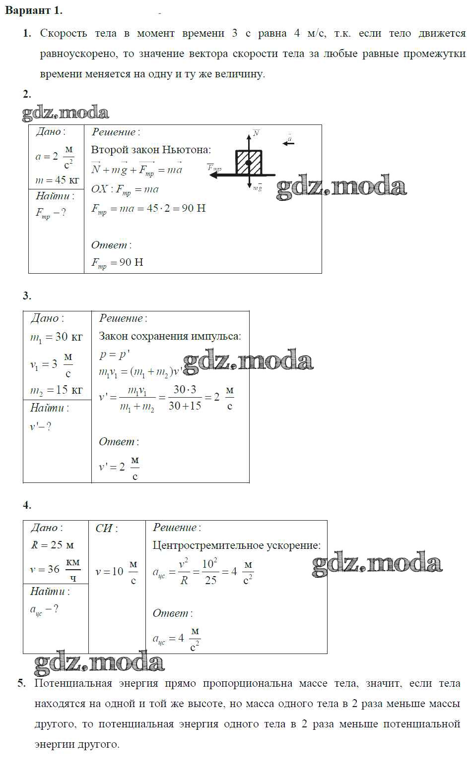 ГДЗ решение к заданию № 1 Физика 9 класс самостоятельные и контрольные работы Марон А.Е. ( к уч. Перышкина А.В.) Дрофа 2018 ФГОС бесплатно на гдз.мода!