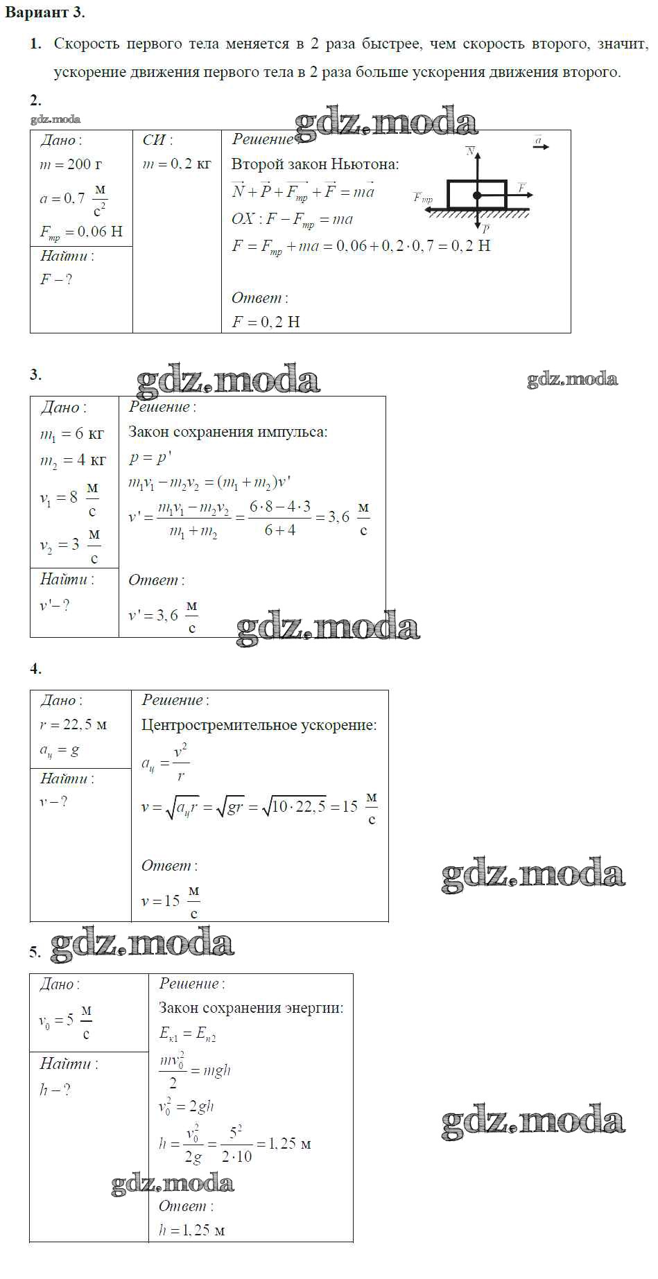 ГДЗ решение к заданию № 3 Физика 9 класс самостоятельные и контрольные работы Марон А.Е. ( к уч. Перышкина А.В.) Дрофа 2018 ФГОС бесплатно на гдз.мода!