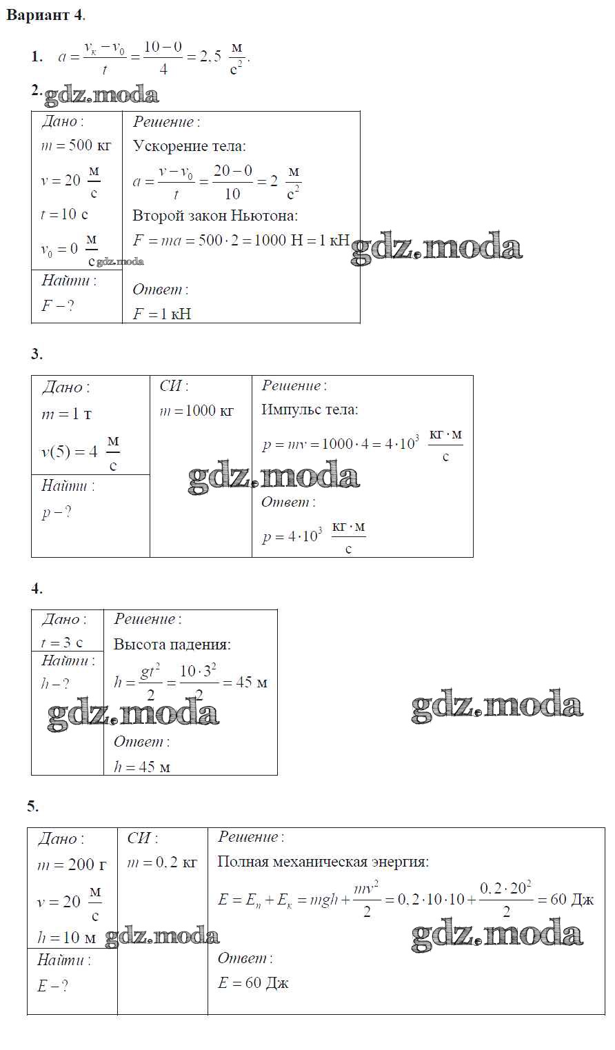ГДЗ решение к заданию № 4 Физика 9 класс самостоятельные и контрольные работы Марон А.Е. ( к уч. Перышкина А.В.) Дрофа 2018 ФГОС бесплатно на гдз.мода!