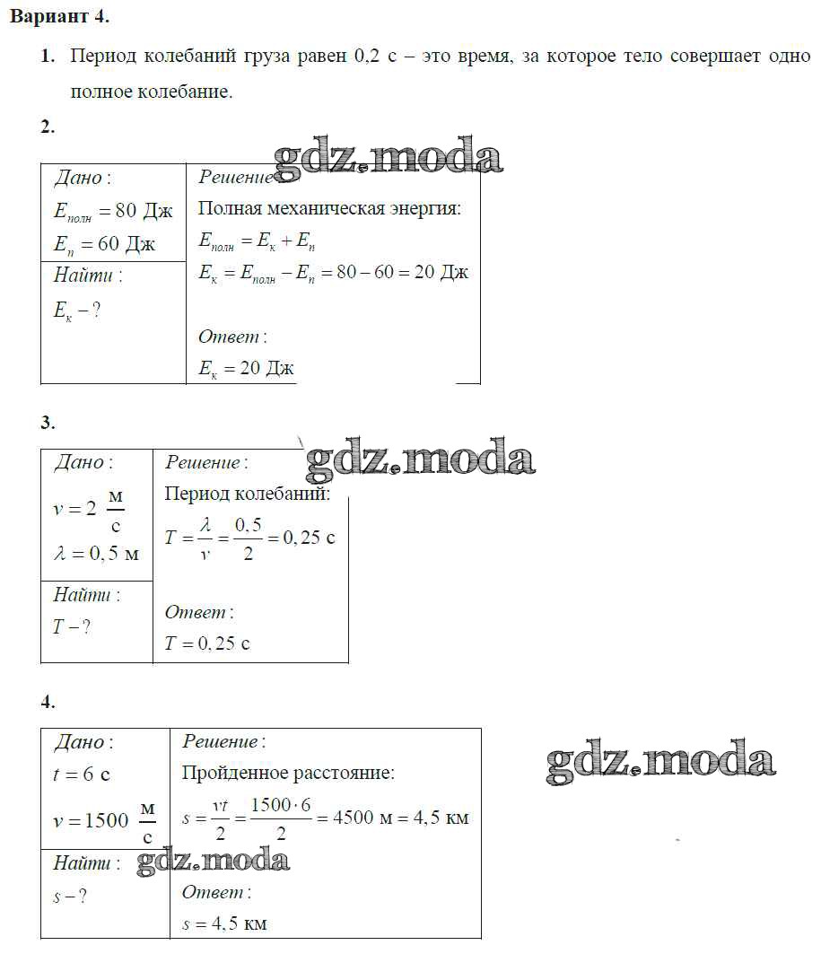 ГДЗ решение к заданию № 4 Физика 9 класс самостоятельные и контрольные работы Марон А.Е. ( к уч. Перышкина А.В.) Дрофа 2018 ФГОС бесплатно на гдз.мода!