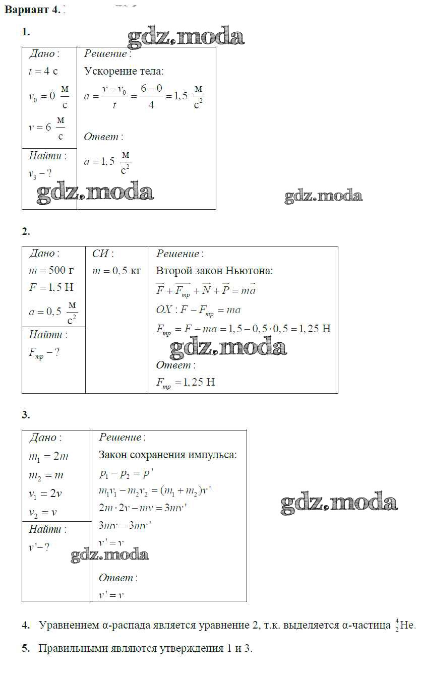ГДЗ решение к заданию № 4 Физика 9 класс самостоятельные и контрольные работы Марон А.Е. ( к уч. Перышкина А.В.) Дрофа 2018 ФГОС бесплатно на гдз.мода!