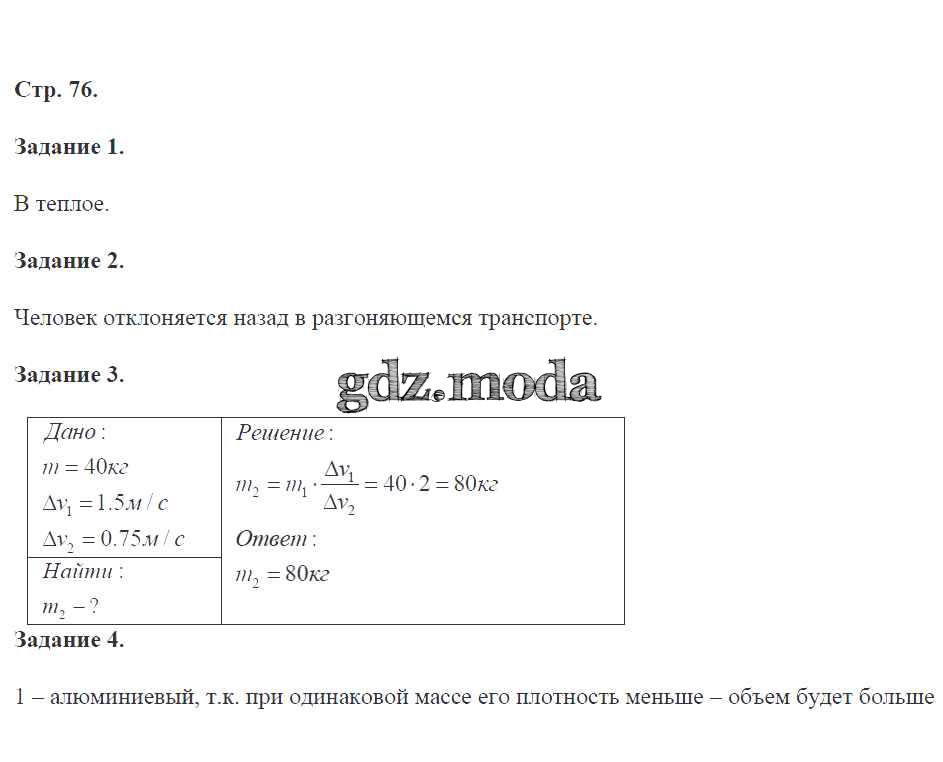 ГДЗ решение к заданию № 76 Физика 9 класс рабочая тетрадь Гутник Е.М. (к уч. Перышкина А.В.) Дрофа 2016 ФГОС бесплатно на гдз.мода!