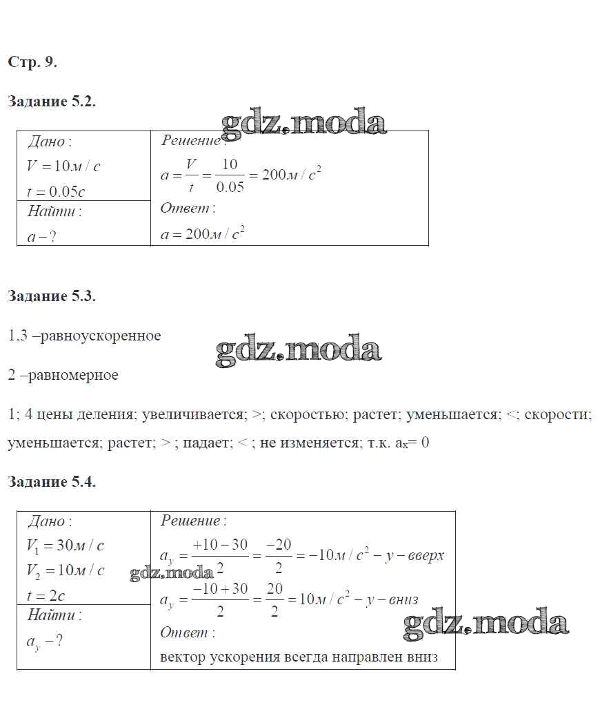 ГДЗ решение к заданию № 9 Физика 9 класс рабочая тетрадь Гутник Е.М. (к уч. Перышкина А.В.) Дрофа 2016 ФГОС бесплатно на гдз.мода!