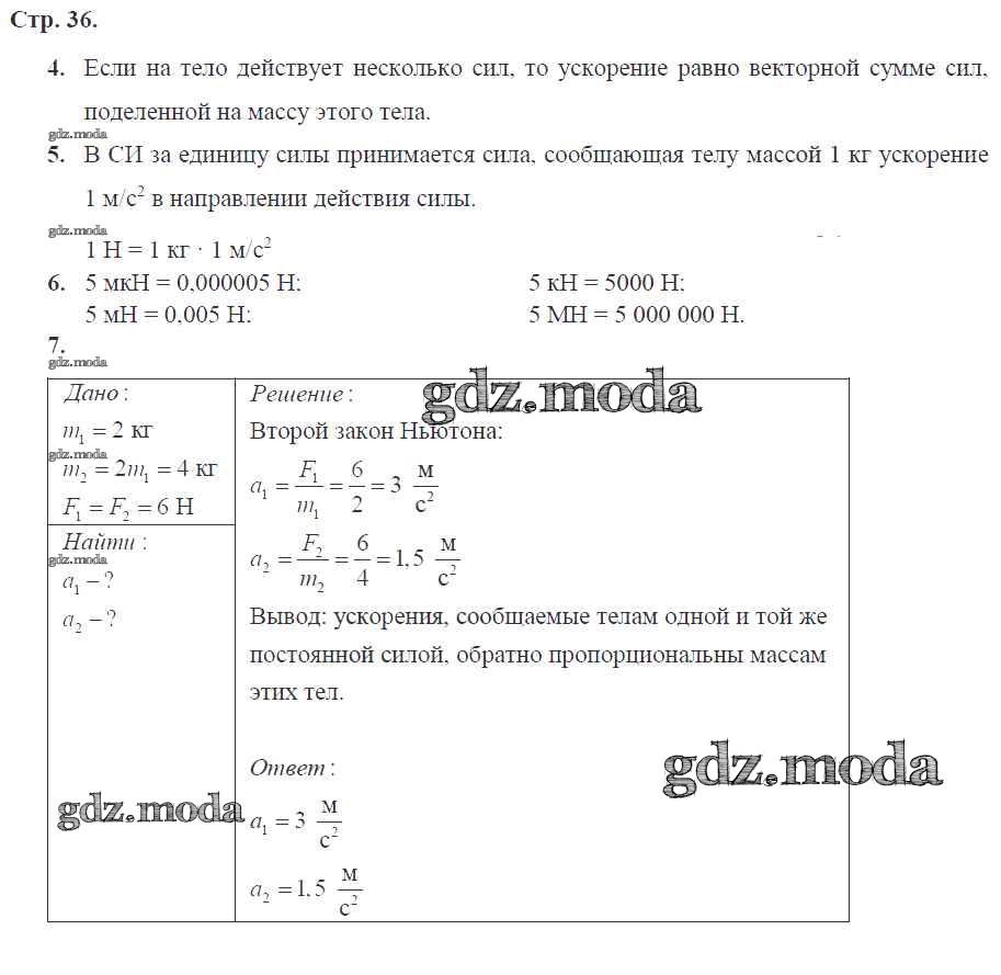 ГДЗ решение к заданию № 36 Физика 9 класс рабочая тетрадь Касьянов В.А. (к уч. Перышкина А.В.) Дрофа 2017 ФГОС бесплатно на гдз.мода!