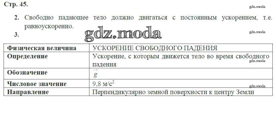 ГДЗ решение к заданию № 45 Физика 9 класс рабочая тетрадь Касьянов В.А. (к уч. Перышкина А.В.) Дрофа 2017 ФГОС бесплатно на гдз.мода!